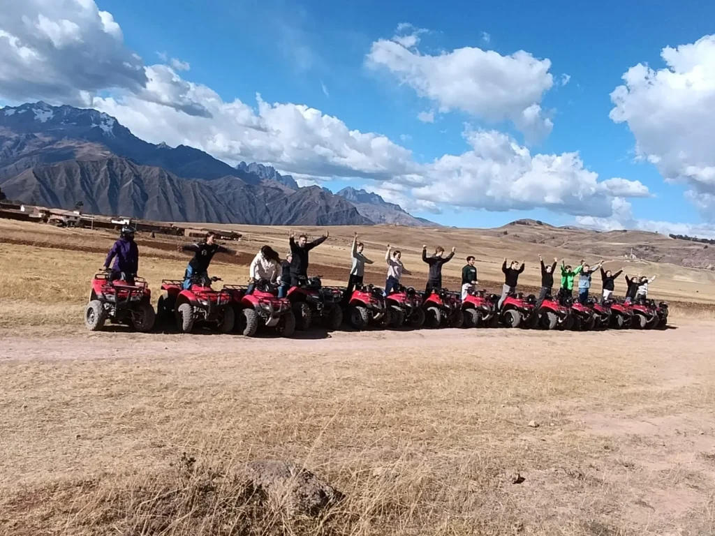 El recorrido inicia en el punto de encuentro donde se entrega el equipo de seguridad y se realiza una breve orientación sobre el manejo de la cuatrimoto. Desde allí se parte hacia Maras atravesando caminos rurales y senderos rodeados de los paisajes andinos, con paradas para disfrutar de las vistas y tomar fotografías de los pueblos tradicionales del Valle Sagrado. Al llegar a las Salineras de Maras se exploran las terrazas de sal mientras se aprende sobre la extracción ancestral y se recorren las piscinas de sal para capturar las mejores panorámicas. Luego se continúa la ruta hacia Moray pasando por andenes agrícolas y campos andinos, con algunas paradas en miradores para apreciar el paisaje. En Moray se recorren las impresionantes terrazas circulares de cultivo mientras se conoce sobre los microclimas y las técnicas agrícolas incas, aprovechando para fotografiar y explorar los distintos niveles de las terrazas. Después se disfruta de un almuerzo con comida típica andina en un restaurante local. Finalmente, se regresa al punto de partida siguiendo una ruta panorámica con paradas opcionales para fotos y descanso, entregando las cuatrimotos y cerrando la experiencia de  lleno de aventura, cultura y paisajes espectaculares.